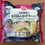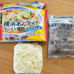 麺(小麦粉、食塩、加工でん粉(打ち粉)、 酒精、かん水)具入りスープ(豚骨(国産)、豚肉、背脂、醤油、調味料(アミノ酸)、(材料の一部に小麦を含む)