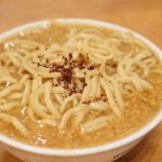 まるでうどんのような太麺が、絶品のスープによく絡まって、最高の相性を生み出します。
